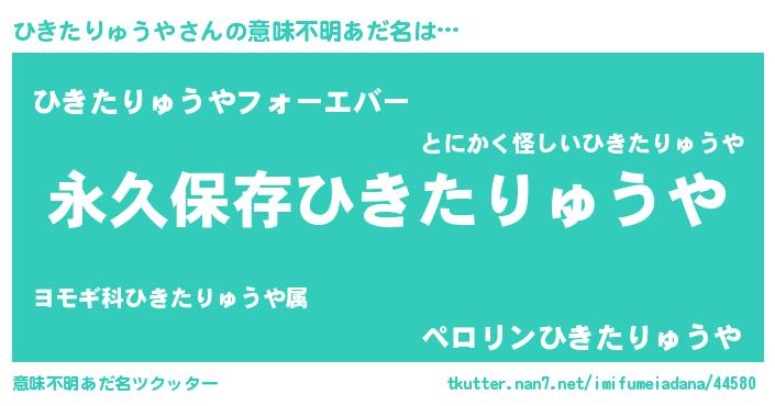 | 胡散臭い通販商品みたいなあだ名 | 『来世でも幸せになれる健康食品…その名も「ひきたりゅうや」』 |