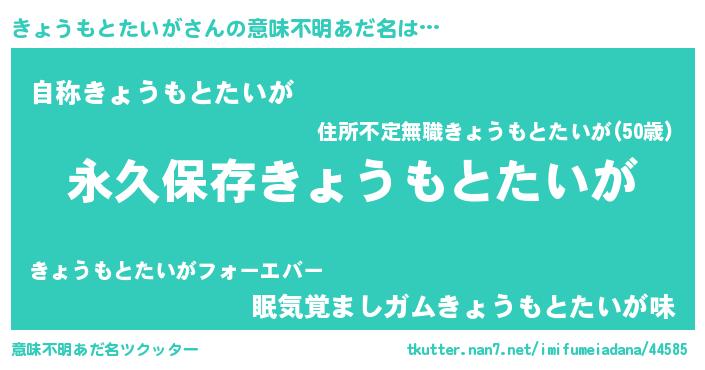 | 胡散臭い通販商品みたいなあだ名 | 『来世でも幸せになれる健康食品…その名も「きょうもとたいが」』 |