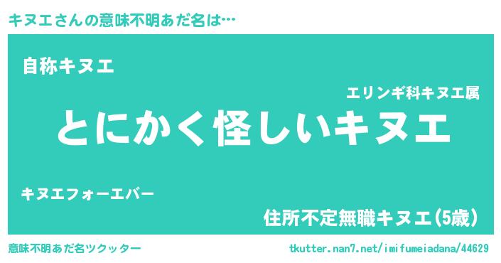 | 胡散臭い通販商品みたいなあだ名 | 『信頼と実績のサプリメント…その名も「キヌエ」』 |