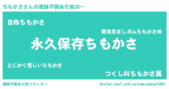 | ヘコむあだ名 | 『ちもかさ(遠い目)』『ちもっちょ』 |