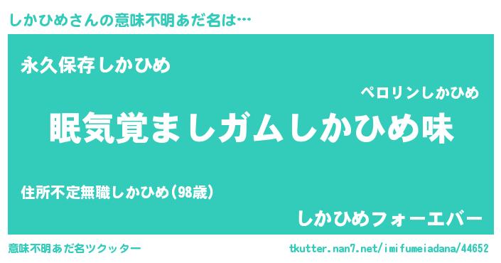 | ヘコむあだ名 | 『しかひめ(苦笑)』『酢こんぶ』 |