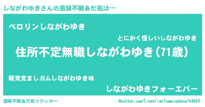 | 欧米人風あだ名 | 『ダレノガレしながわゆき』 |