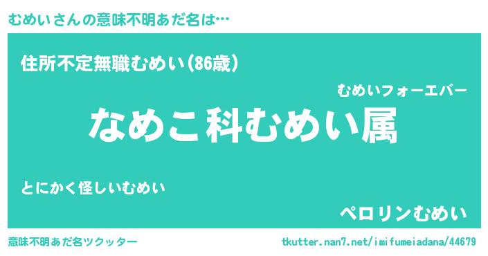 | ヘコむあだ名 | 『むめもー』『なまこ酢』『むめを』 |