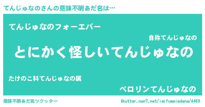 | 女子向けラノベタイトル風あだ名 | 『てんじゅなのの卵を拾いまして』 |