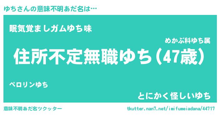 | ポケモン風あだ名 | 『ユーチイ』『ユックウザ』『ヒユチ』 |