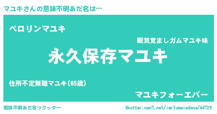 | 男性向けラノベタイトル風あだ名 | 『マユキという概念が存在しない退屈な世界 』 |