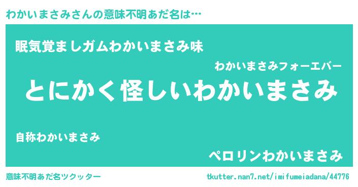 | ポケモン風あだ名 | 『ヒワカイマサミ』『ワックウザ』 |