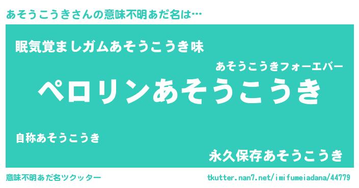 | ヒーロー風カッコイイあだ名 | 『スーパーアソウコウキ』 |