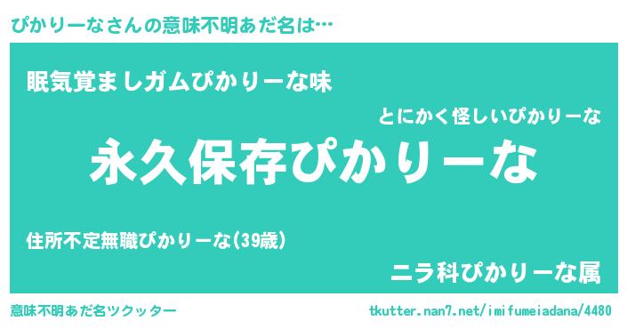 | ヘコむあだ名 | 『ぴかりーな(小並感)』『ぴかぷりん』 |