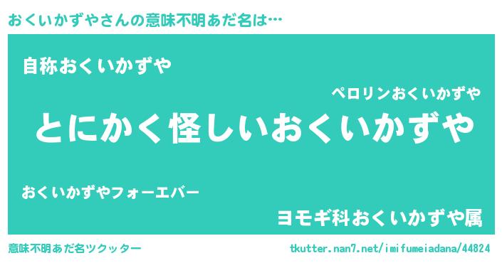 | 男性向けラノベタイトル風あだ名 | 『おくいかずやの嫁は女の子じゃないと思った?』 |