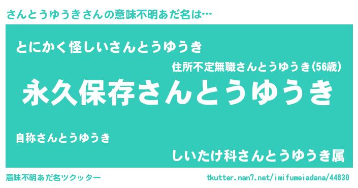 | 胡散臭い通販商品みたいなあだ名 | 『来世でも幸せになれる招き猫…その名も「さんとうゆうき」』 |