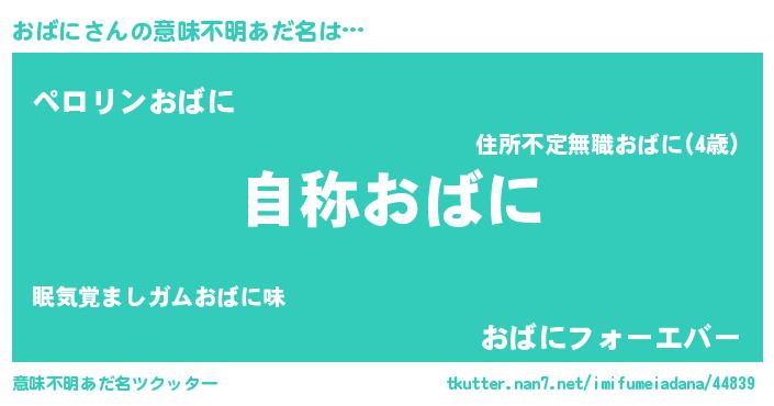 | 男性向けラノベタイトル風あだ名 | 『Re:おばにから始める異世界生活』 |