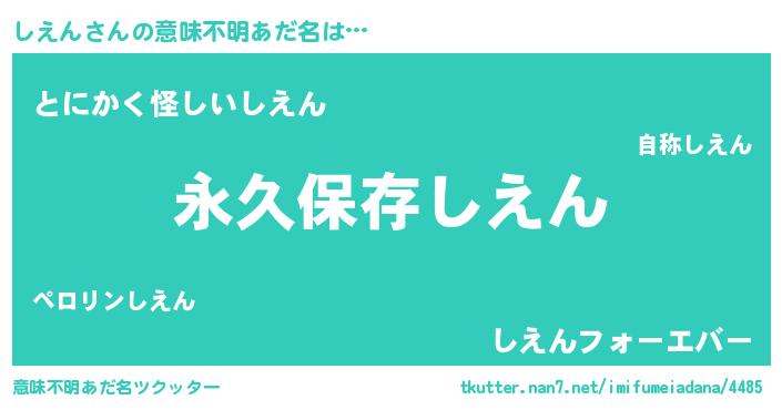 | ヘコむあだ名 | 『しえん(爆)』『しえぷりん』 |