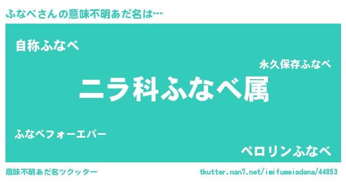 | 男性向けラノベタイトル風あだ名 | 『ふなべ~年齢イコール彼女いない歴の魔法使い~』 |