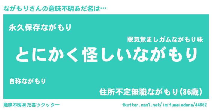 | 男性向けラノベタイトル風あだ名 | 『ながもりの嫁は女の子じゃないと思った?』 |