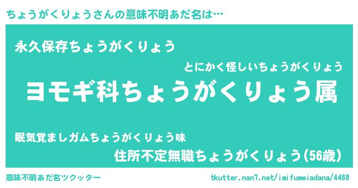 | 胡散臭い通販商品みたいなあだ名 | 『前代未聞の健康食品…その名も「ちょうがくりょう」』 |