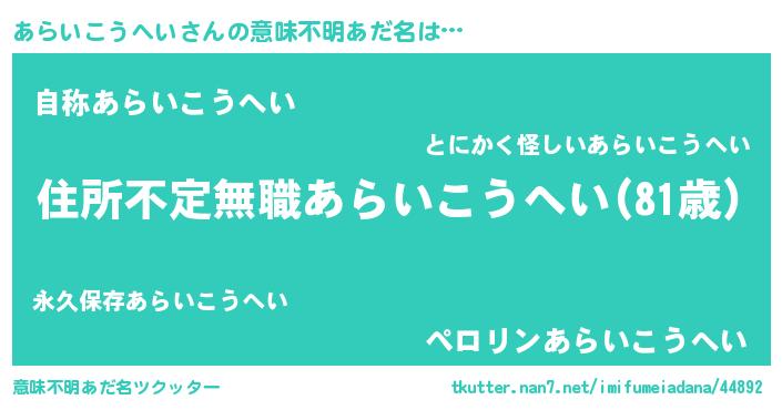 | 胡散臭い通販商品みたいなあだ名 | 『あなたにだけ特別に提供する世界で10本だけ現存している希少なブランデー…その名も「あらいこうへい」』 |