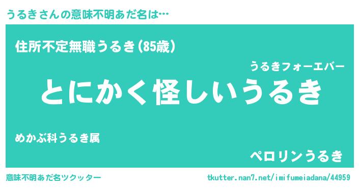 | 恥ずかしいあだ名 | 『ウルリンリン』『プリティーうるき』 |