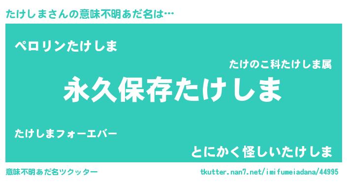 | 男性向けラノベタイトル風あだ名 | 『たけしまという概念が存在しない退屈な世界 』 |