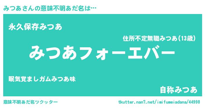 | ヘコむあだ名 | 『豆乳』『みつあ(苦笑)』『みつ太郎』 |