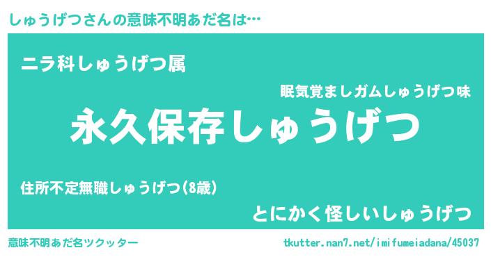 | ヘコむあだ名 | 『しゅうげつ(笑)』『しゅっぺ』 |