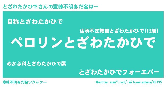 | 胡散臭い通販商品みたいなあだ名 | 『モテモテ間違いなし水晶球…その名も「とざわたかひで」』 |
