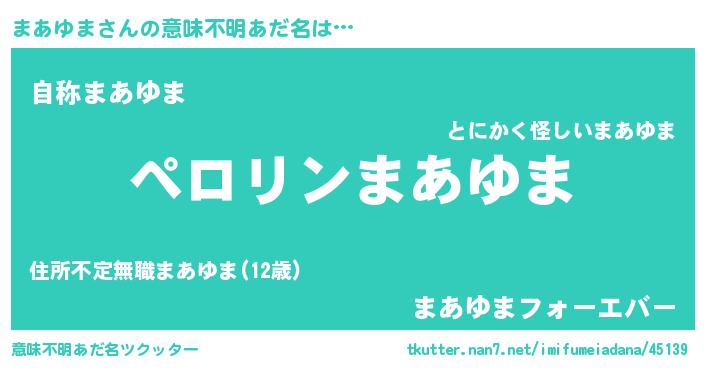 | 男性向けラノベタイトル風あだ名 | 『まあゆまの憂鬱』 |