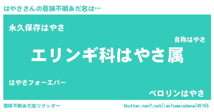 | ポケモン風あだ名 | 『ハヤキング』『メロハッヤ』 |