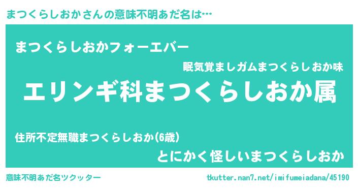 | 料理風あだ名 | 『まつくらしおかごはん』 |
