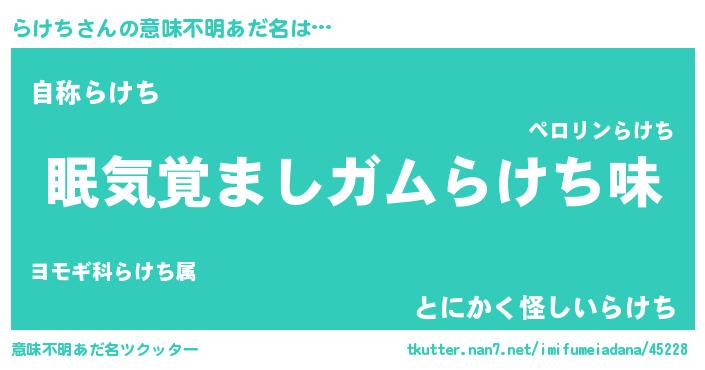 | ヘコむあだ名 | 『らけお』『らけふぇ~』『酢こんぶ』 |