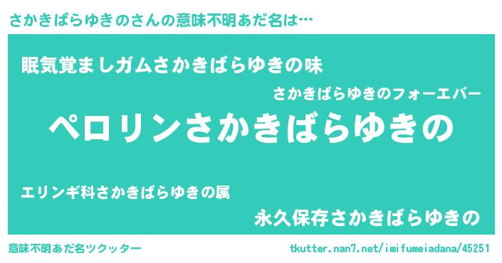 | 胡散臭い通販商品みたいなあだ名 | 『モテモテ間違いなしブレスレット…その名も「さかきばらゆきの」』 |