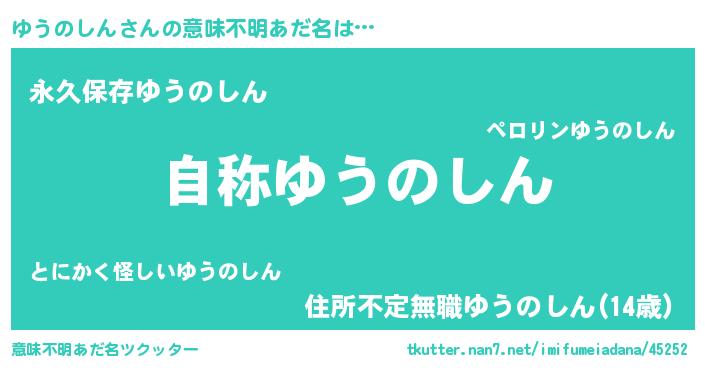 | 男性向けラノベタイトル風あだ名 | 『うちのゆうのしんが世界を掌握している!』 |
