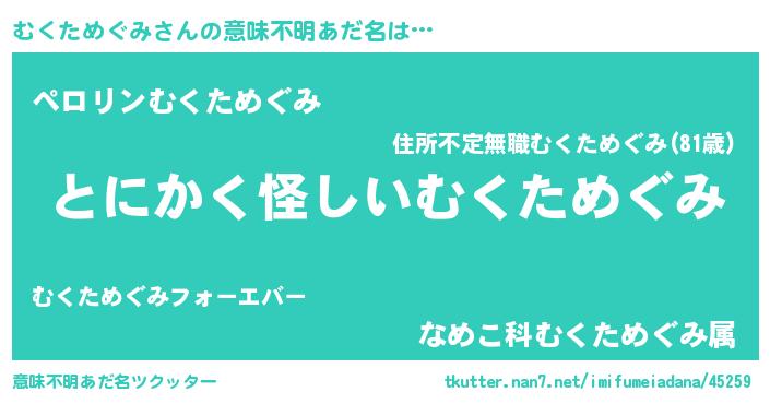 | 女子向けラノベタイトル風あだ名 | 『むくためぐみの卵を拾いまして』 |