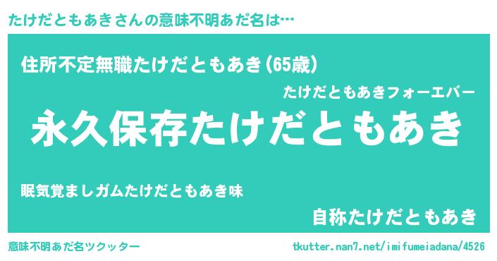 | 可愛いあだ名 | 『たーみん』『たけだともあきママ』 |