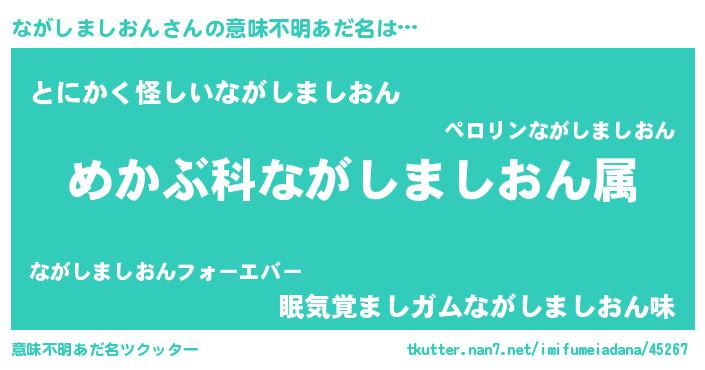 | 料理風あだ名 | 『ながしましおんごはん』 |