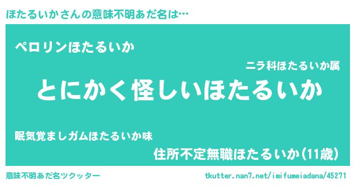 | 欧米人風あだ名 | 『ほたるいか・ステッグマイヤー』 |
