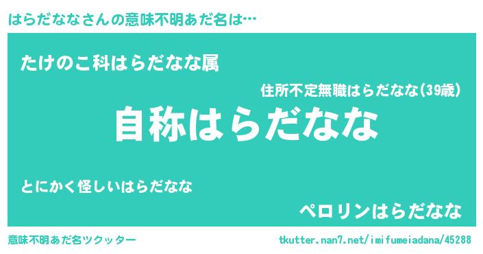 | ヒーロー風カッコイイあだ名 | 『ウルトラ戦士ハラダナナ』 |