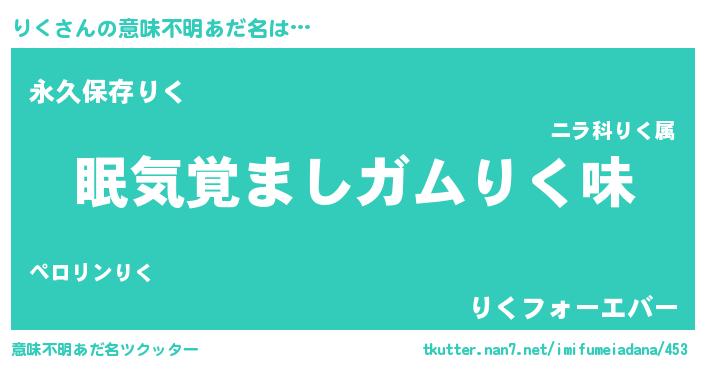 | ヘコむあだ名 | 『りく(爆)』『つくし』『りくもー』 |