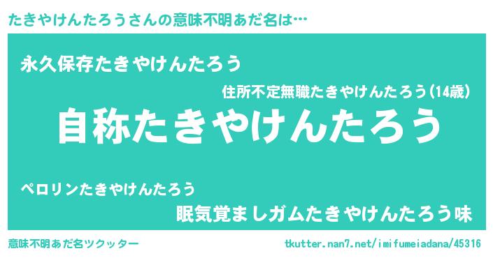 | 肩書あだ名 | 『たきやけんたろう閣下』 |