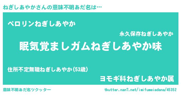 | ヘコむあだ名 | 『ねぎもー』『ねぎしあやか(笑)』 |