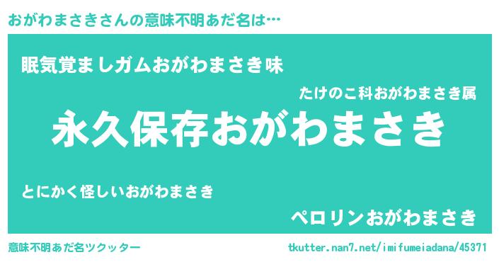 | 男性向けラノベタイトル風あだ名 | 『おがわまさきという概念が存在しない退屈な世界 』 |