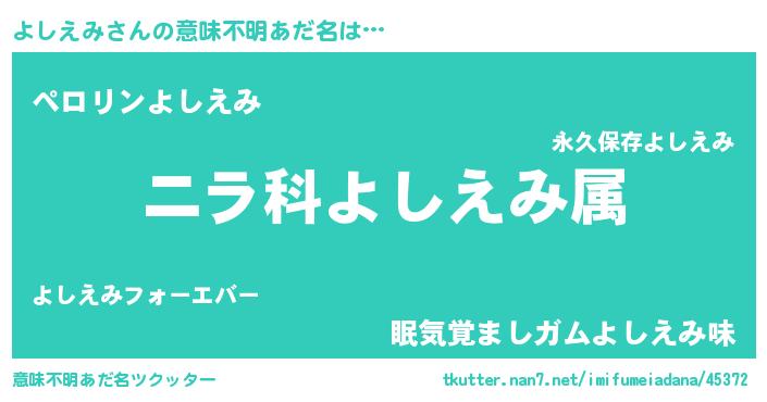 | 男性向けラノベタイトル風あだ名 | 『よしえみに滅ぼされるだけの簡単なお仕事です』 |