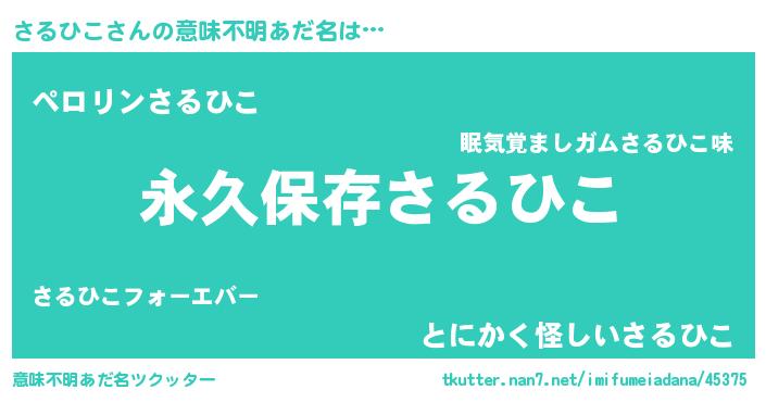 | 男性向けラノベタイトル風あだ名 | 『さるひこという概念が存在しない退屈な世界 』 |