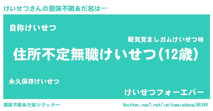 | ヒーロー風カッコイイあだ名 | 『仮面ケイダー』『最強戦士ケイセツ』 |