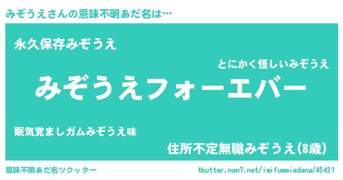 | ヒーロー風カッコイイあだ名 | 『ウルトラみぞうえマン』『ネオミゾウエ』 |