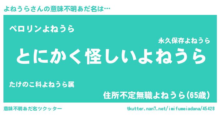 | 男性向けラノベタイトル風あだ名 | 『よねうらの嫁は女の子じゃないと思った?』 |