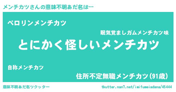 | 胡散臭い通販商品みたいなあだ名 | 『信頼と実績のサプリメント…その名も「メンチカツ」』 |