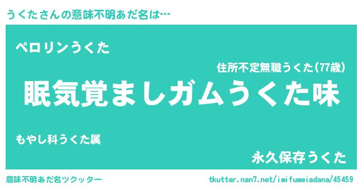 | 欧米人風あだ名 | 『アンジェラ・うくた』『ダニエルうくた』 |