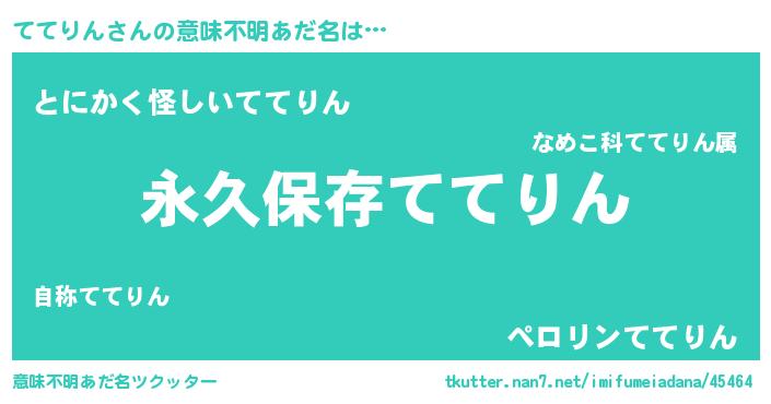| 男性向けラノベタイトル風あだ名 | 『ててりんという概念が存在しない退屈な世界 』 |