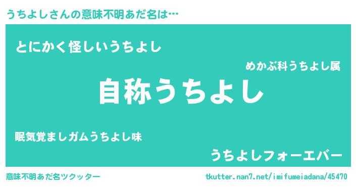 | ヒーロー風カッコイイあだ名 | 『超時空戦士ウチヨシ』『炎刃騎士ウチ』 |